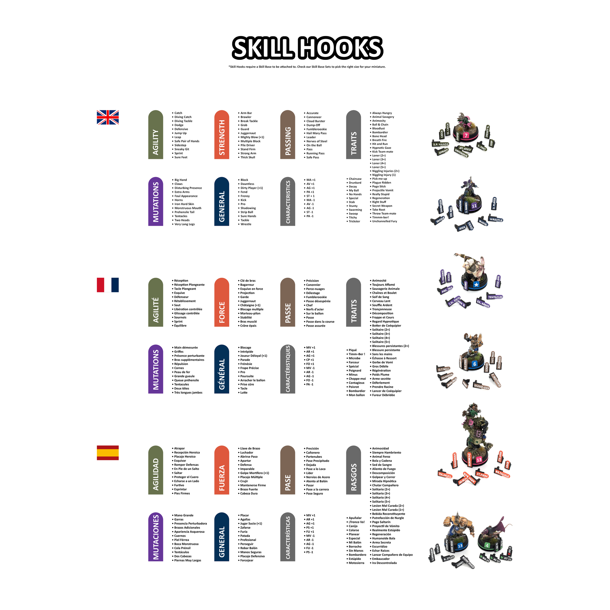 Only what you need: We offer 7 different sets for skills in Agility, Strength, Passing, Mutations, General, Characteristics, and Traits. Or check our Standard and Extended sets for a wide spread of skills from all categories for your whole team!
