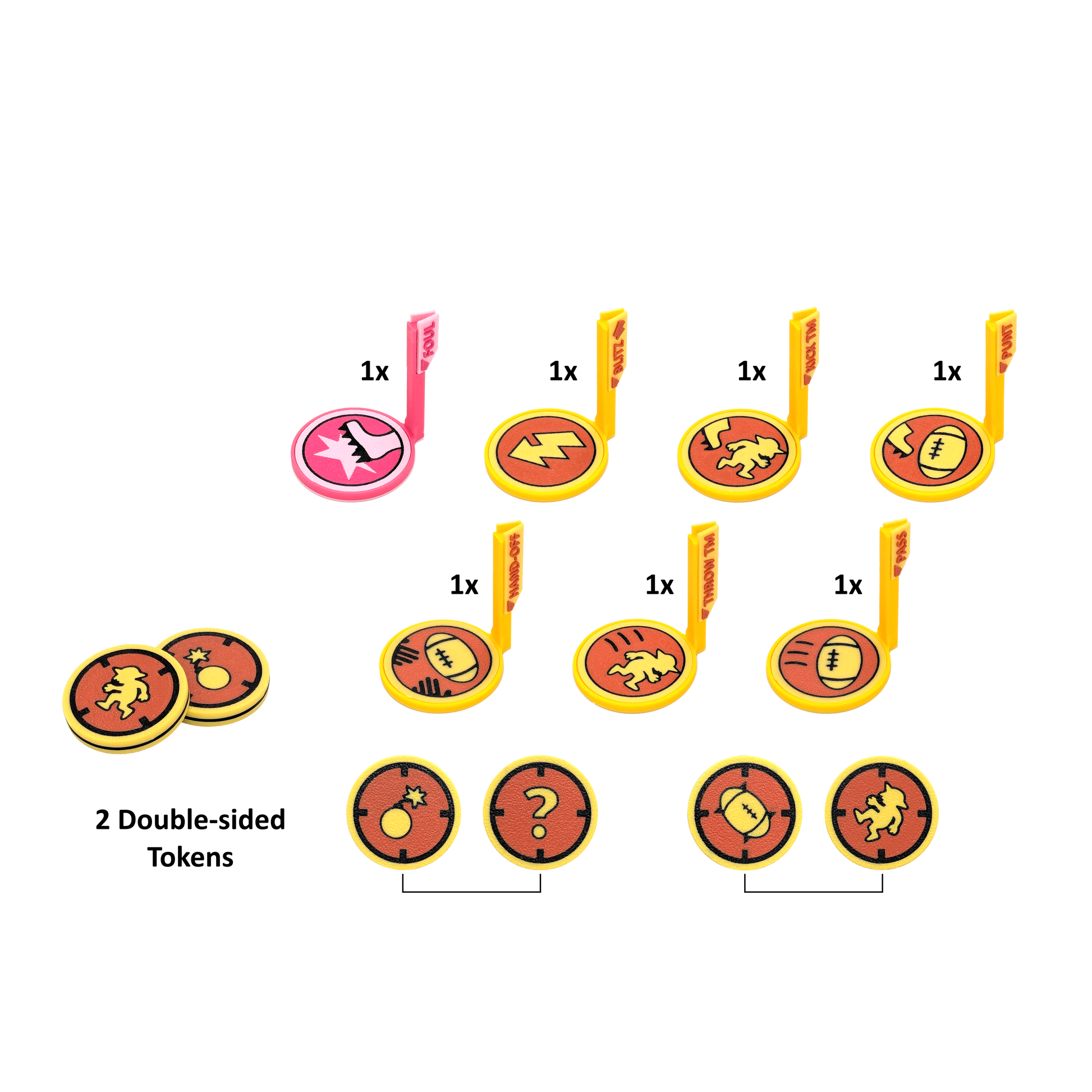 Practical All-Around: The set contains markers for seven different actions, as well as two tokens to mark where you want to throw your team-mate, ball, bomb, etc. It comes with spacers to arrange the markers as a cylinder for safe transport and storage.