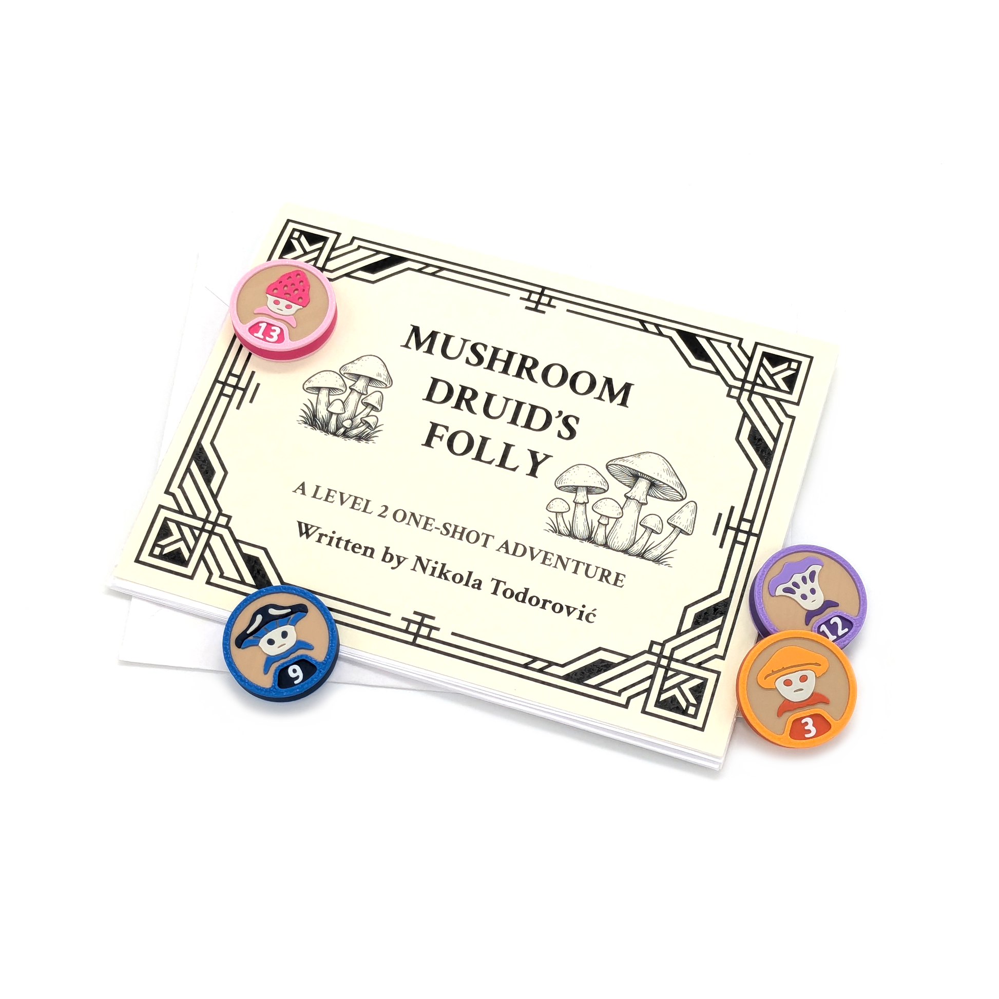 Start Playing Now: The set includes the free one-shot "Mushroom Druid's Folly", written by Nikola Todorović, that uses the tokens, so that you can get right to playing!