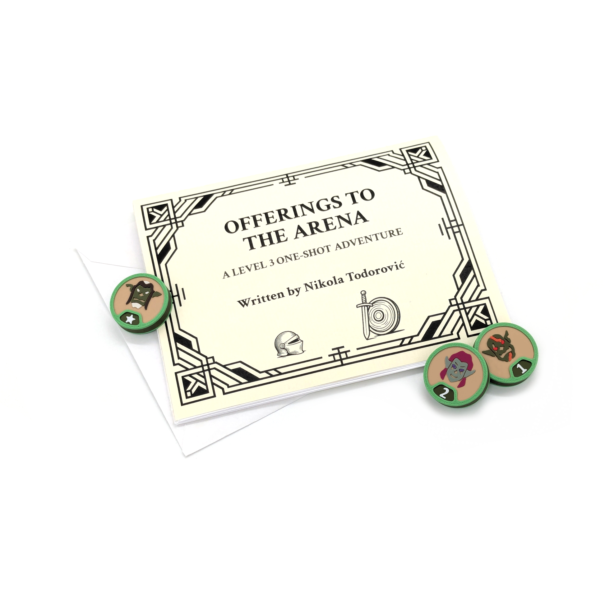 Start Playing Now: The set includes the free one-shot "Offerings to the Arena", written by Nikola Todorović, that uses the tokens, so that you can get right to playing!