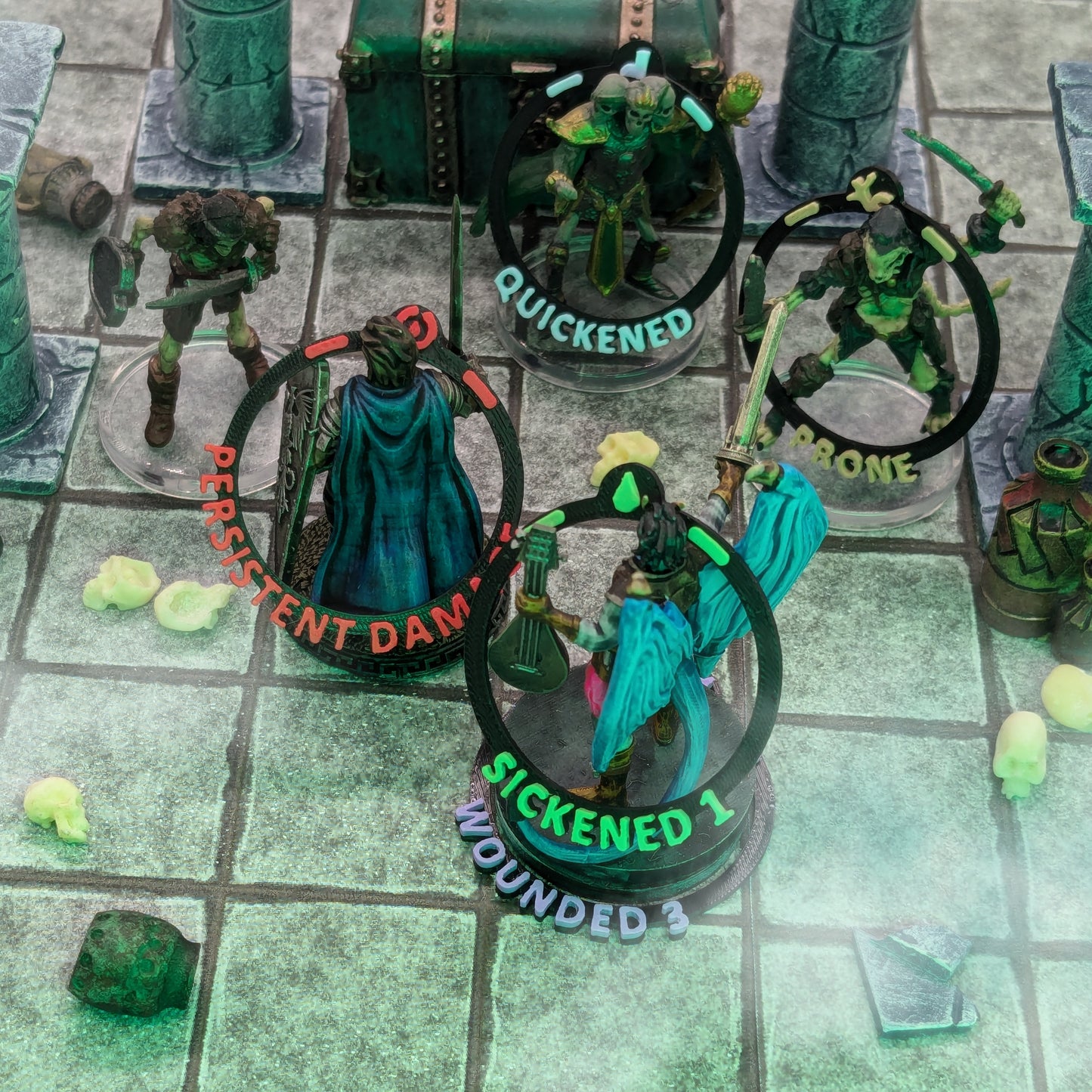 Miniature bases for conditions are a fun and helpful visual, but what do you do, when your barbarian is enraged and blessed at the same time, or your wizard is concentrating, frightened, and invisible?